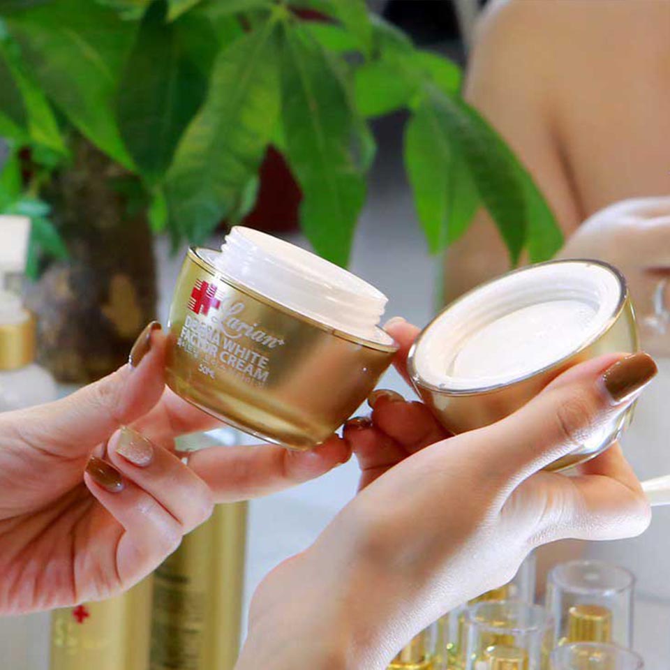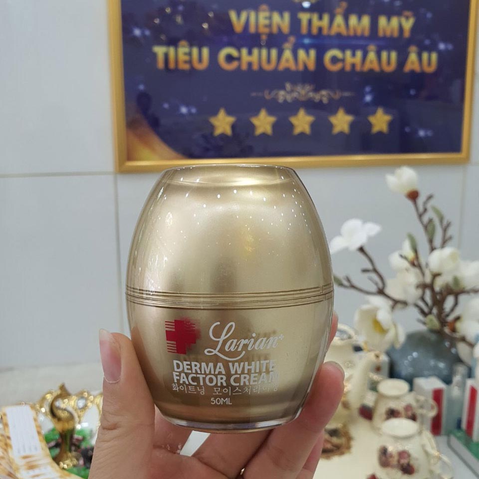 Kem dưỡng trắng da Larian Derma White Factor Cream được chiết xuất tổng hợp từ PDRN, aburtin, Glutathione, Niacinamidet….Kem dưỡng trắng da trị thâm nám Derma White Factor Cream Larian, giúp làm trắng da nhanh hiệu quả cao và an toàn, với lượng thành phần dưỡng trắng cao và chống lão hóa, đem lại làn da rạng rỡ, sáng láng chỉ trong 2- 3 tuần sử dụng.
